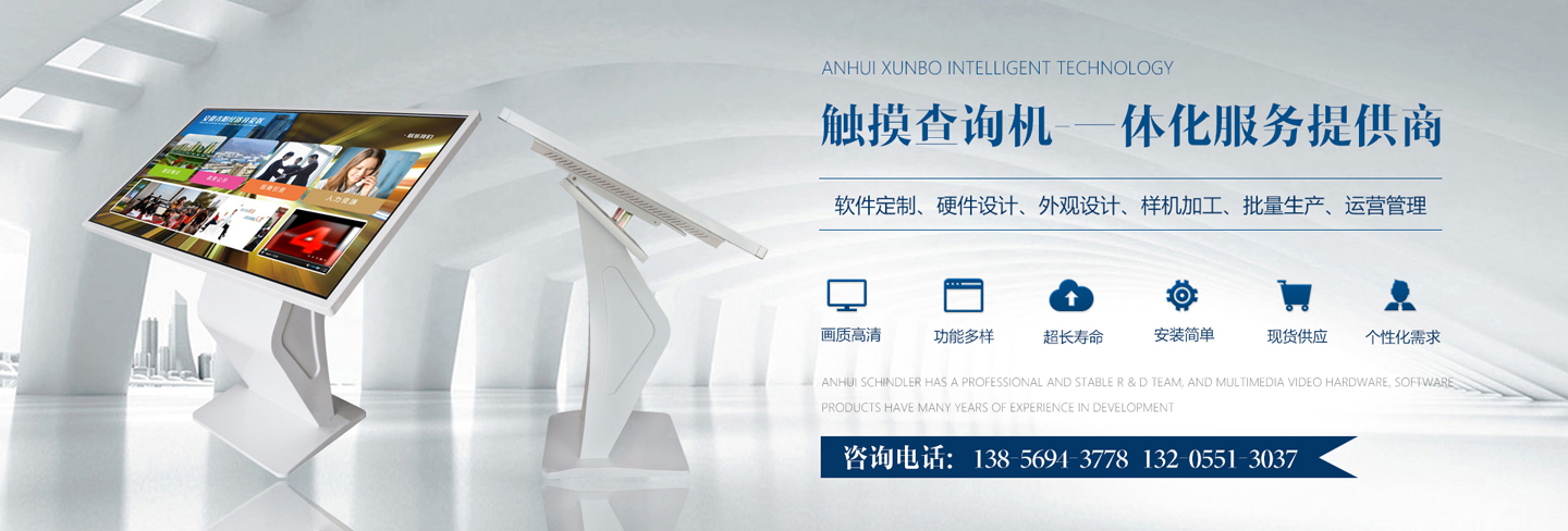 迅博智能 主要從事觸摸屏、觸摸顯示器、OLED柔性觸摸屏、觸摸查詢一體機系列產品及觸摸顯示互動體驗軟硬件產品;智能排隊叫號、網上預約排隊叫號、安康碼皖事通取號系統;曲面屏、OLED 屏幕、柔性屏、LCD液晶大屏拼接系統;落地式、壁掛式單機版網絡版室內外廣告機及數字標牌廣告信息發布系統;室內外LED電子格柵透明屏、單雙色、全彩電子大屏;各類辦事營業廳:公積金...